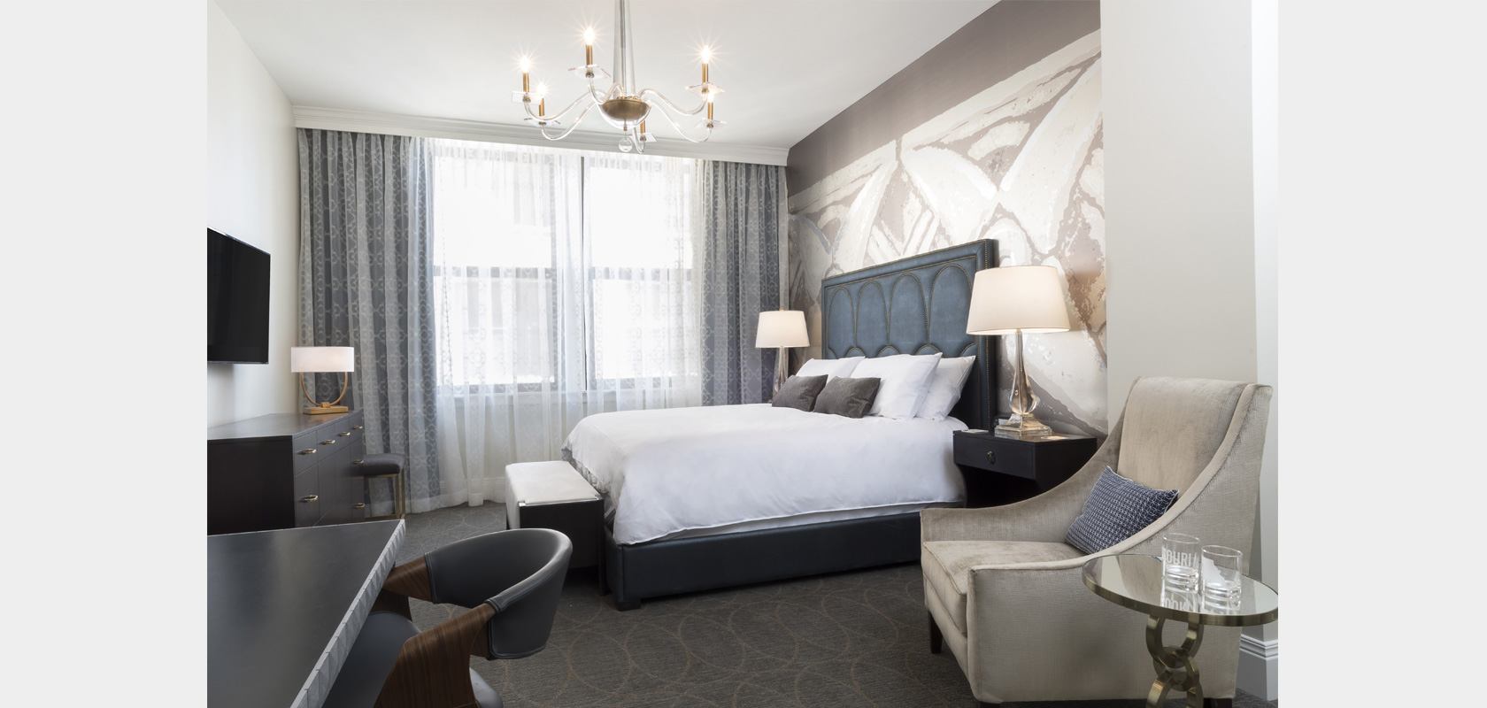 Hotel Saint Louis revitalizes an 1893 historic landmark designed by the famed architect Louis Sullivan, considered the creator of the modern skyscraper. The building, formerly known as the Union Trust Company Building, was purchased in 2015 by Restoration Saint Louis. After a multi-million-dollar renovation by Restoration Saint Louis, the hotel opened as Hotel Saint Louis under the Marriott Autograph Collection in December of 2018. Combining the evocative style of clean lines with lush Celtic and Art Nouveau touches of natural and geometric forms, Checkmate Design has melded the past, present, and future in one original Hotel Saint Louis, a destination like no other.