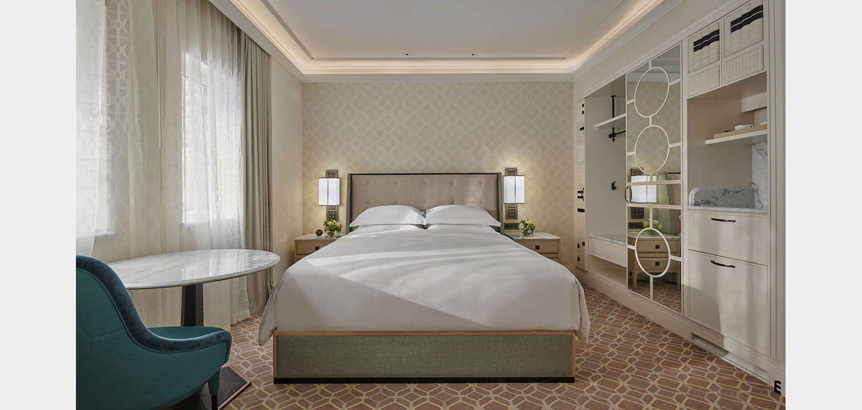 Phòng tắm của tất cả các phòng suite đều được lắp đặt WASHLET SG hoặc WASHLET GL, giúp tăng thêm độ tiện nghi vệ sinh và thoải mái cho khách hàng. Thiết kế phòng tắm ấn tượng, kết hợp tất cả sự tao nhã của một thời đại đã qua: mặt sàn được làm từ đá cẩm thạch, tường lát gạch lộng lẫy và có vách ngăn bằng kính. Thêm vào đó, phòng tắm còn được trang bị WASHLET, điều này như minh chứng rằng những sản phẩm hiện đại nhất của TOTO cũng vô cùng phù hợp với kiến trúc và nội thất truyền thống.